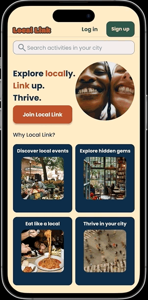 Local Link streamlines the process of discovering local activities and communities through personalized suggestions, curated events, and connection features that make integrating into a new city simple and enjoyable.