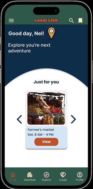 Moving to a new city can be overwhelming, especially when trying to find things to do and meet new people. This storyboard illustrates how Nellie uses Local Link to discover activities, connect with like-minded individuals, and feel at home in her new environment.